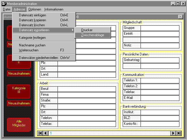 Die Applikation "MemberAdministration" dient der Verwaltung von Vereins- oder Verbands-Adressen unter MS-Windows (ab Version 3.1x).